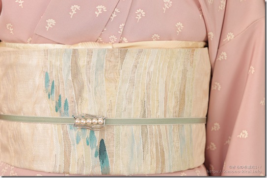 この帯は着物を購入する1年前に「ながもち屋」で入手しました。税込16,500円でした。