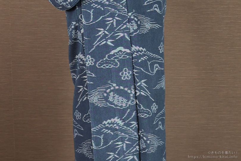 絵絣の主役は鶴と亀。松竹梅は控えめにデザインされています。