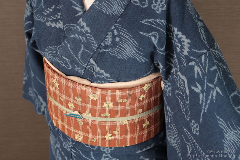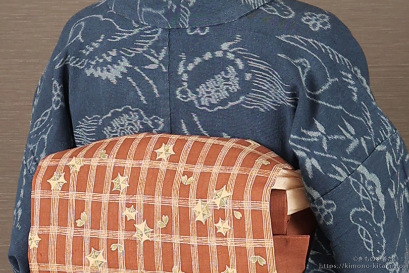 - 着物が大柄の絵絣なので細かい模様の帯を合わせたい