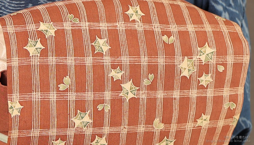 民芸調でカジュアル感が強いきものですが、地厚の木綿は着るほどに肌に心地よく、素朴な温かみを感じます。