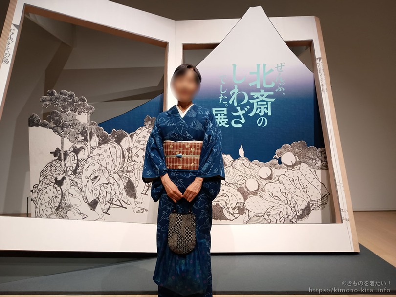 葛飾北斎と聞いて私がイメージするのは富嶽三十六景の富士山と青い波の錦絵です。着たいと思った着物は明るい藍色の木綿絣でした。