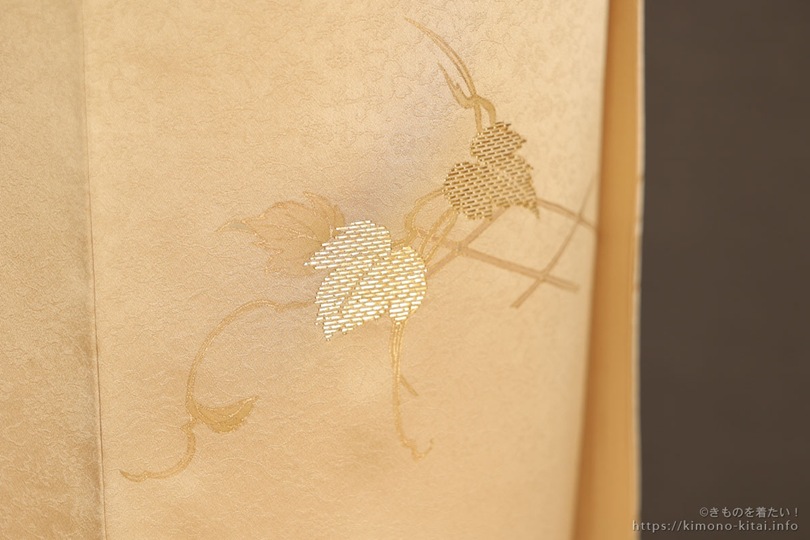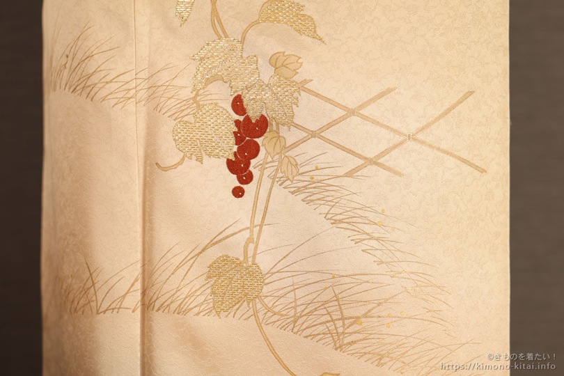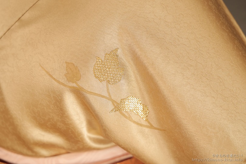 この着物の竹屋町刺繍は近くで見ないとわからないと思うので、拡大写真でご紹介します。
