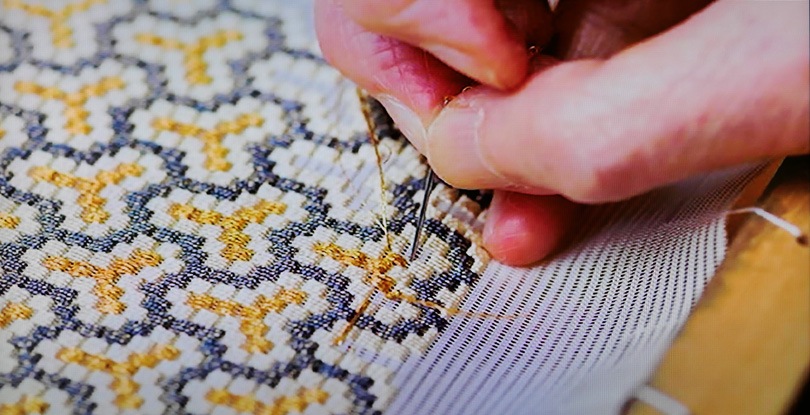 △絽刺し刺繍(2019年 江戸川区伝統工芸展「刺繍と人形」の展示パネルより)